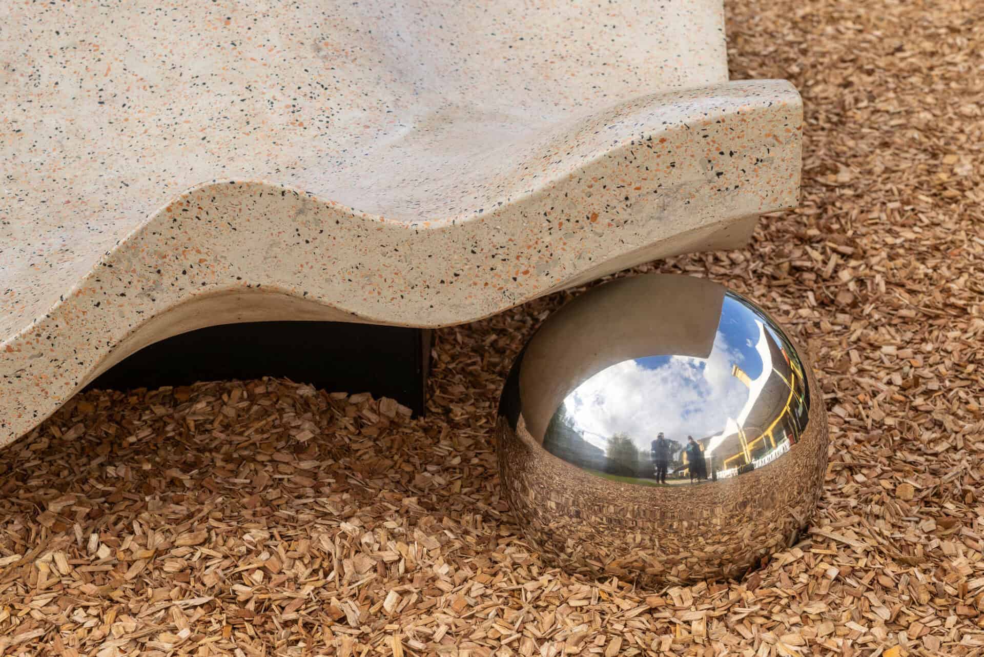 Edwina Green, babanh-u laangi-yuyuk-a (Mother of Pearl), concrete and stainless steel, 2025 (details). Incinerator Gallery (install view). Photo: Timothy Burgess. Courtesy Incinerator Gallery MVCC.