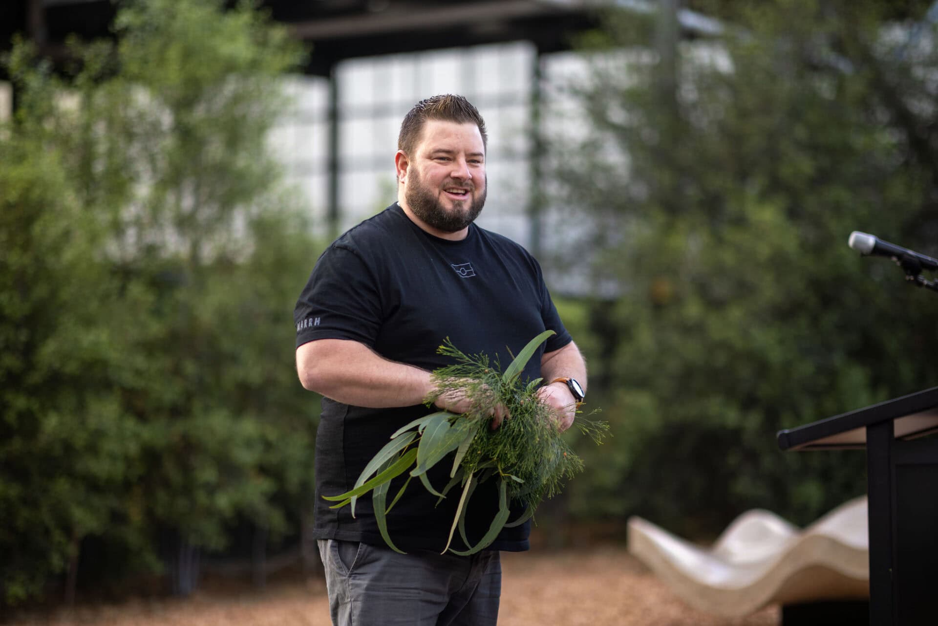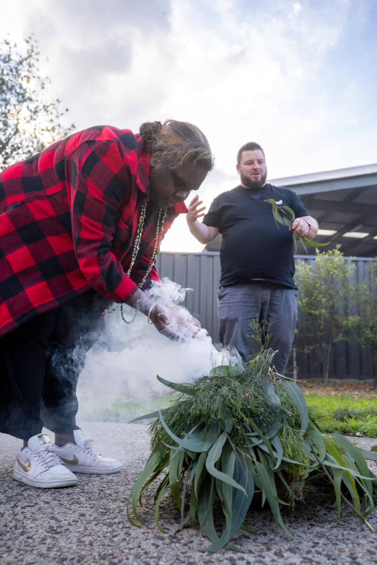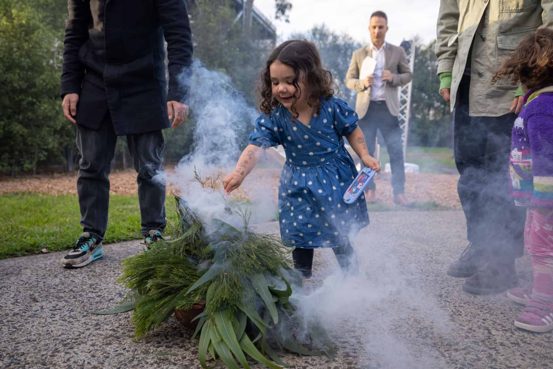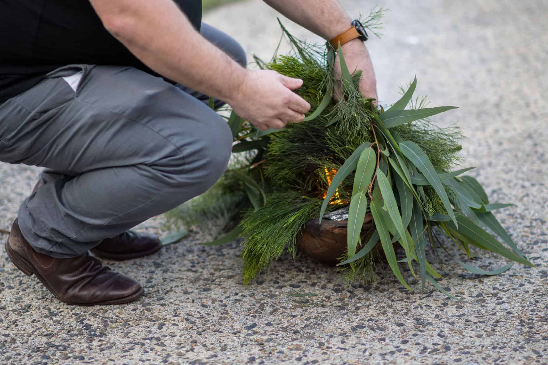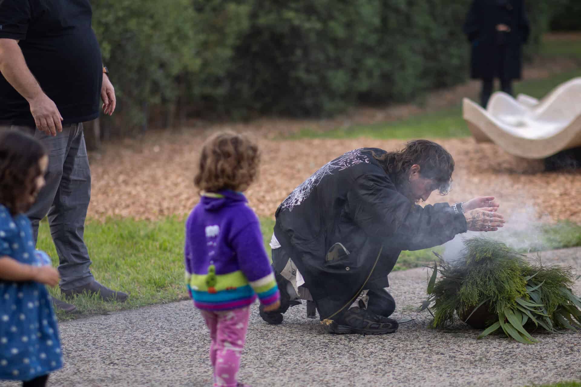 Welcome to Country and Smoking Ceremony, led by Wurunjuri Elder, Incinerator Gallery (20 September 2025. Photo: Timothy Burgess. Courtesy Incinerator Gallery MVCC.