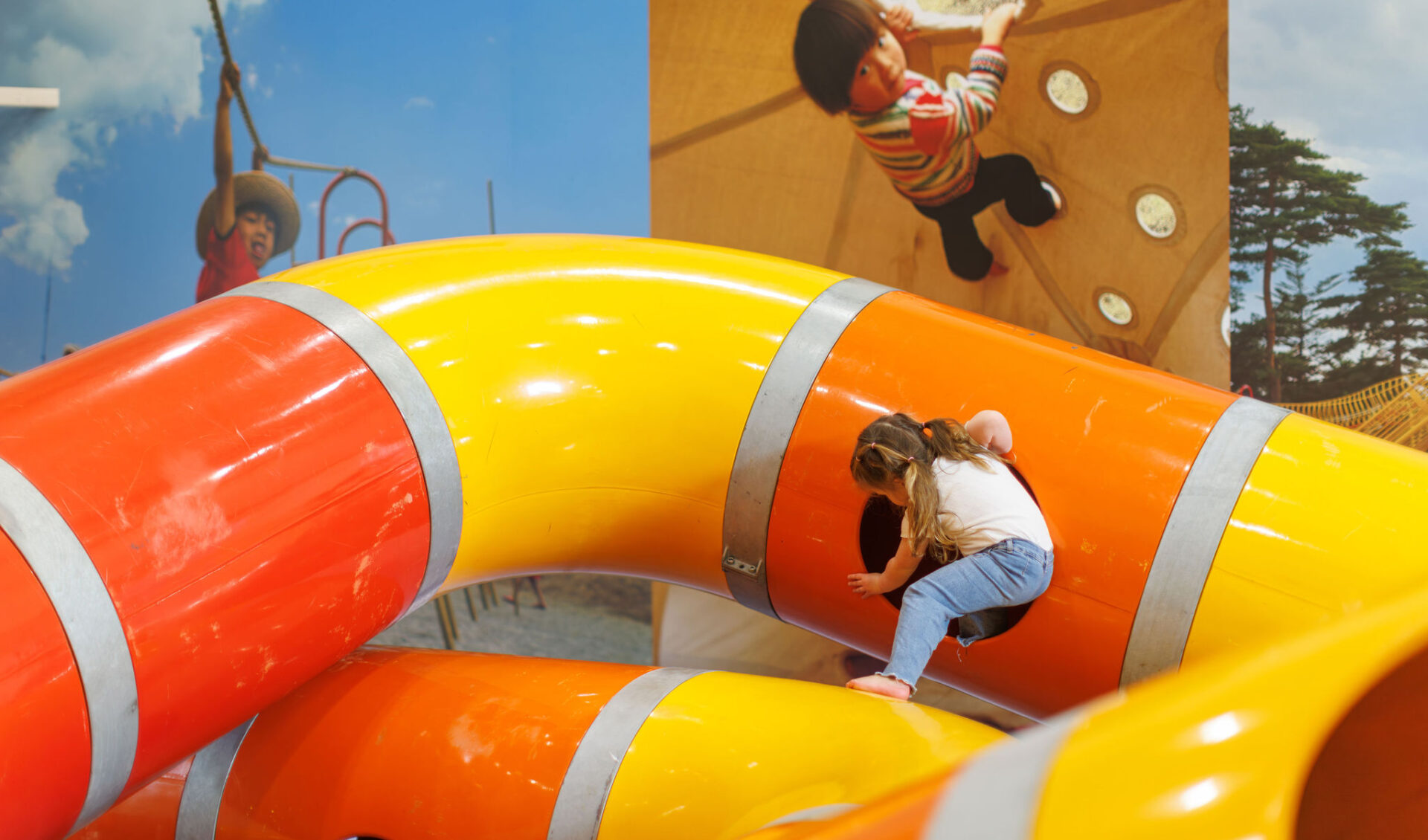 The first abstract Play Sculptures appeared in Sweden, Holland and Denmark in the 1940s. Led by artists and designers outdoors and often with limited space; kids were invited to kinetically engage with unique works of art. Informed by Maria Montessori and Rudolf Steiner’s pedagogy of ‘free play’, these site-specific installations were usually made from organic matter (sand, wood, water and stone). On occasion, more durable industrial materials (metal, concrete and fibreglass) were applied and since the 1960s, plastic offers a lightweight and affordable solution for bright bold designs.