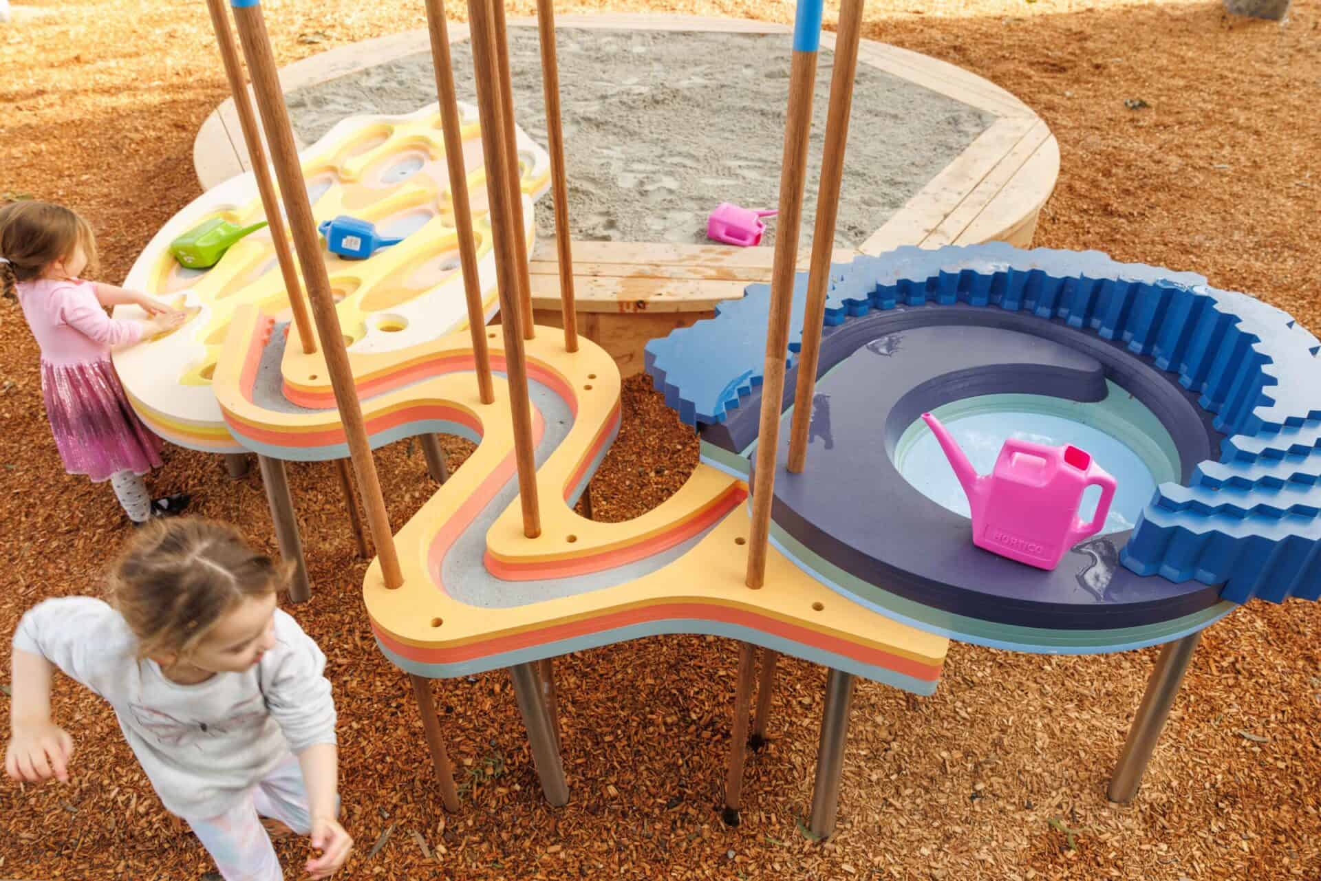 ” … [Playgrounds] have a long history in children’s play spaces dating back to the 1800s when Fredrich Frobel, widely considered the creator of the kindergarten, promoted the benefits brought by playing with sand in the open air. Then in the early 1900s the coupling of water with sand play was embraced in Scandinavia with many landscape playgrounds appearing.”