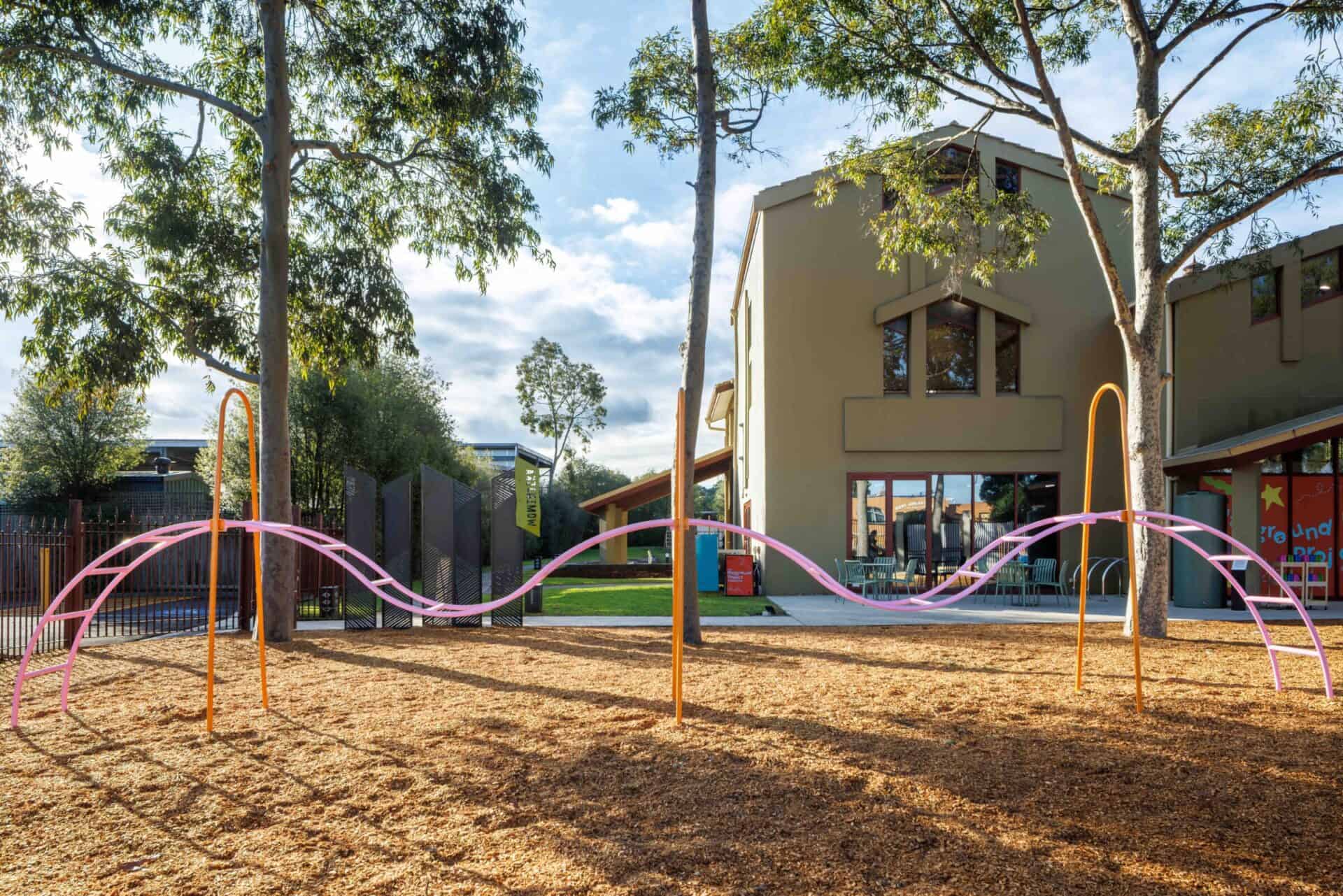 This outdoor installation, consisting of three distinct design elements, is an homage to modernist architects, Walter Burley Griffin (1876-1937) and Marion Mahony Griffin (1871-1961), designers of the original Incinerator building, as well as Aldo van Eyck (b. 1951), a city planner of Amsterdam, whose practice over many decades, championed the integration of play and public spaces.